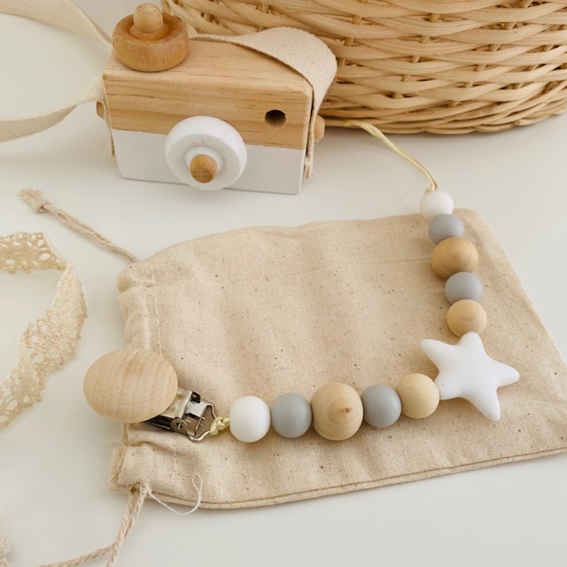 Chupetero Natura una combinacion de silicona alimentaria y madera natural,ideal para que nuestros pequeños vayan a la ultima , dentro de una linea clásica como suele ser Chupetbabies , totalmente mordisqueable para aliviar en la medida de lo posible la temible dentición ademas de ser un buen aliado para llevar sujeto y no perder el chupete.