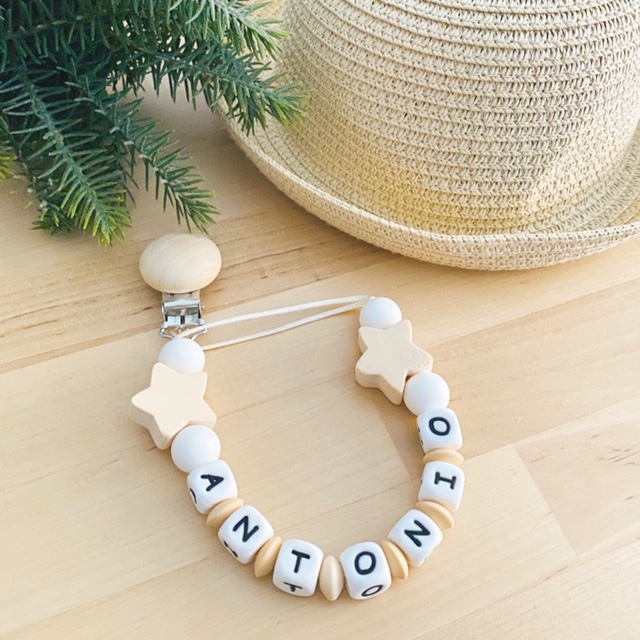 Chupetero personalizado white creme star