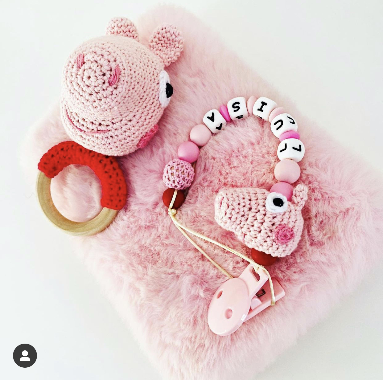Chupetero personalizado modelo Pepa Pig  en silicona  y crochet. los dibujos de nuestros pequeñ@s ahora en chupetero.