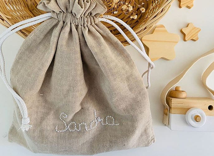 Saquito tela personalizada hecha y bordada a mano,tanto para pequeños en etapa infantil como para adultos y sus cositas o ideal para los viajes.
