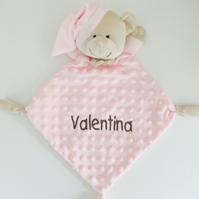Este Doudou es algo más que un simple peluche. Está pensado para que se convierta en un imprescindible compañero de sueño y juego que da tranquilidad al bebé. Ofrecemos la posibilidad de personalizar el producto el con el nombre del bebé bordado. Elige la opción que más te guste!