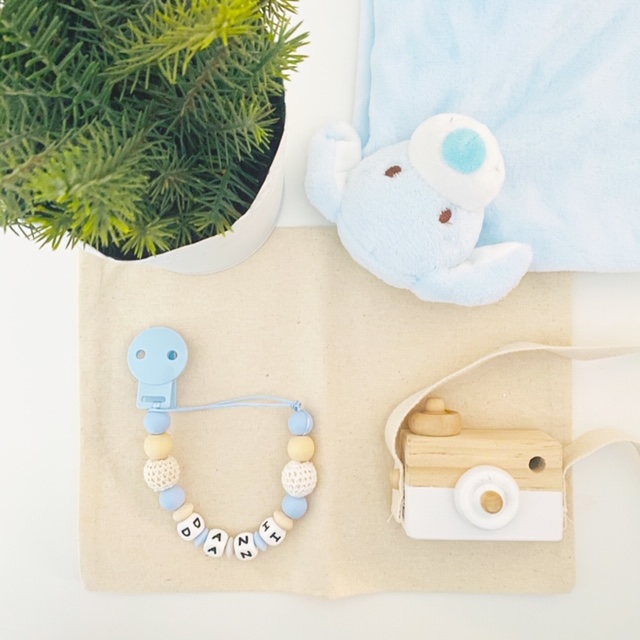Nuestro chupetero básico personalizado basic blue esta hecho de silicona alimentaria libre de BPA,totalmente personalizable,mordisqueable y lavable,incluye dos bolitas de crochet que hace que sea diferente.