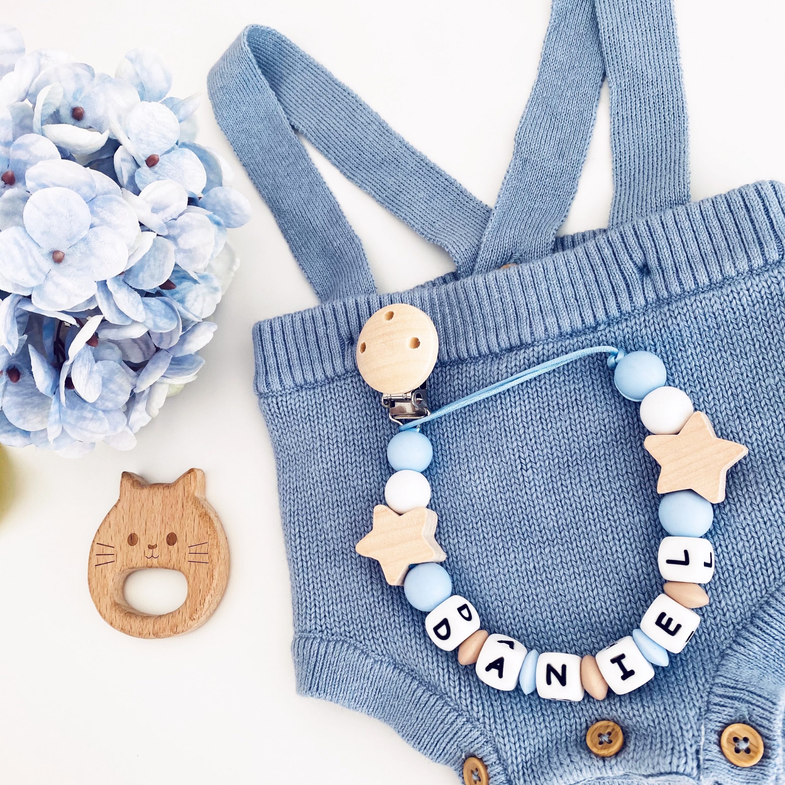 Nuestro chupetero básico personalizado pink-grey esta hecho de silicona alimentaria libre de BPA,totalmente personalizable,mordisqueable y lavable.
